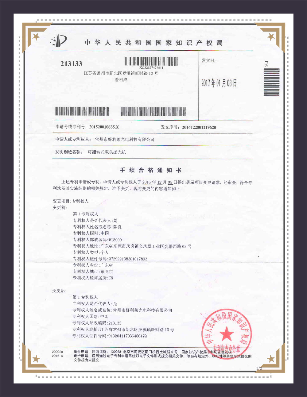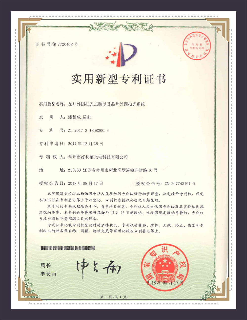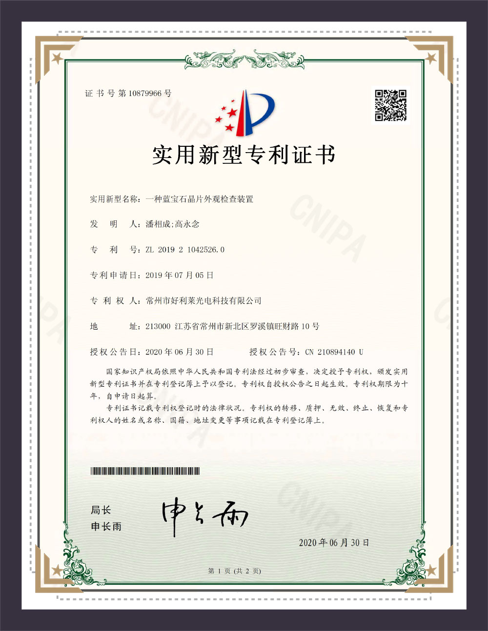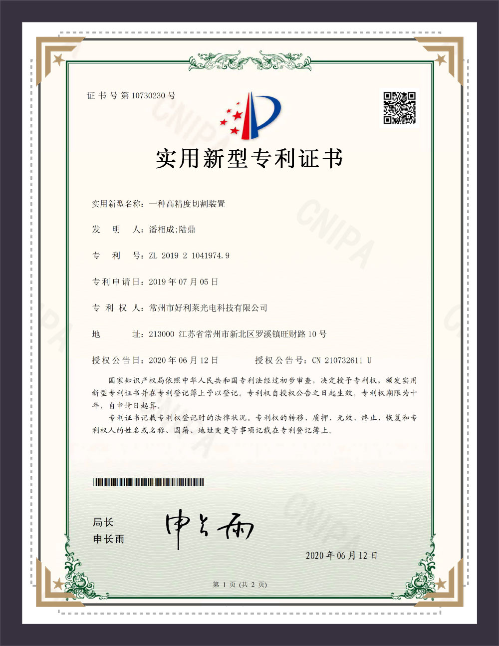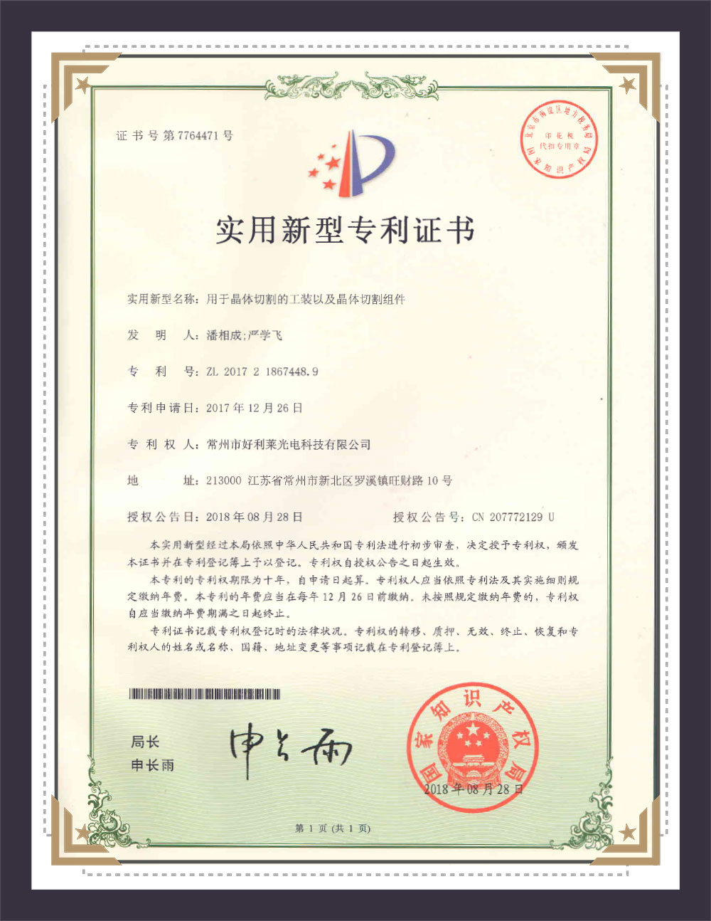 Verktøysmodell patentsertifikat